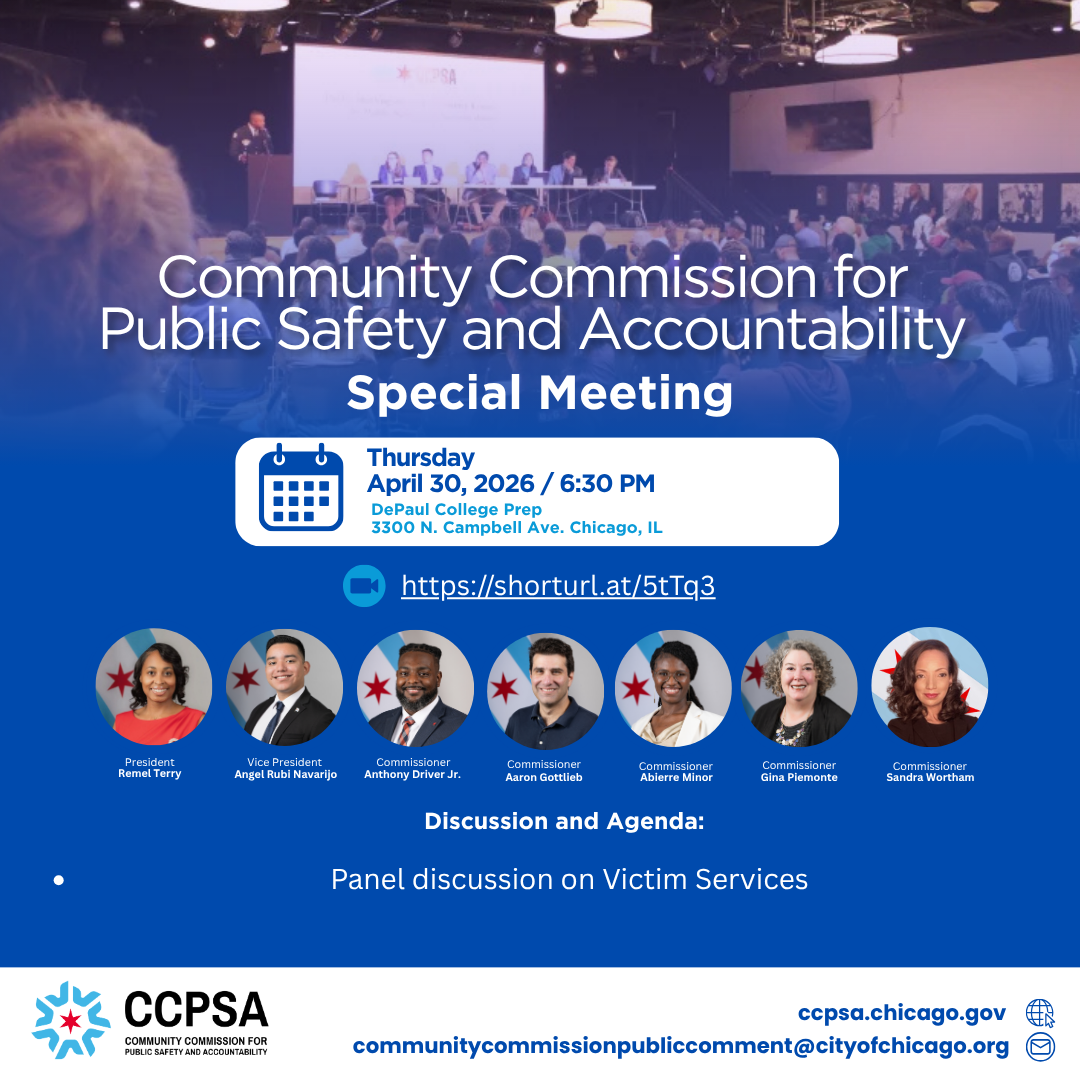 Join CRS at the Community Commission for Public Safety and Accountability (CCPSA)’s monthly public meeting. Parking is available onsite.